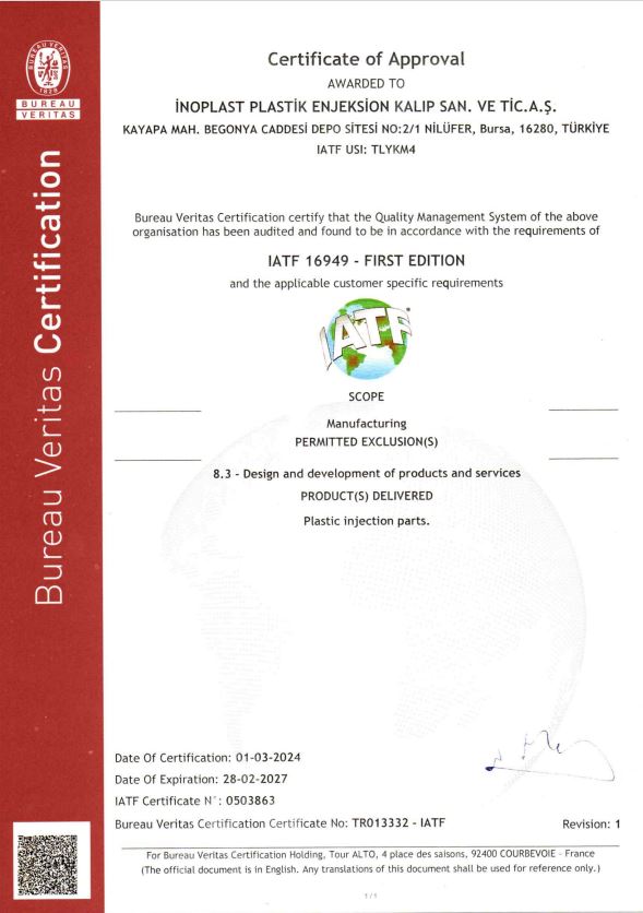 Müşterilerimizin beklentileri, geçerli yasal şartlar ve IATF 16949 Kalite Yönetim Sistemi Standartları’nın gerekliliklerine göre tüm süreçlerimizi yönetiyoruz. Sürekli iyileştirmeyi sağlayarak hataların önlenmesine odaklanan yönetim sistemimiz ile kalitemizi ve müşteri memnuniyetimizi güvence altına alıyoruz. Güvenli bir iş ortamında, kesintisiz ve standart bir üretim yapabilmek amacıyla benimsediğimiz teknik gereklilikleri eksiksiz yerine getiriyoruz.